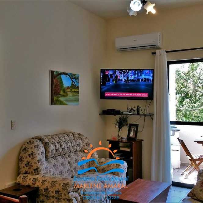 Apartamento Ótimo na quadra do Mar. 1 suíte de casal e 1 dormitório de solteiro com 2 camas, banheiro social, sala estar/jantar em ambientes integrados, sacada com churrasqueira, cozinha com geladeira e freezer, área de serviço, máquina de lavar roupas, Internet/Wi-fi e TV a Cabo, ar condicionado na suíte e sala, ventiladores de teto na sala e dormitório, acomoda 4 a 5 pessoas. 1 Vaga de garagem fixa coberta.