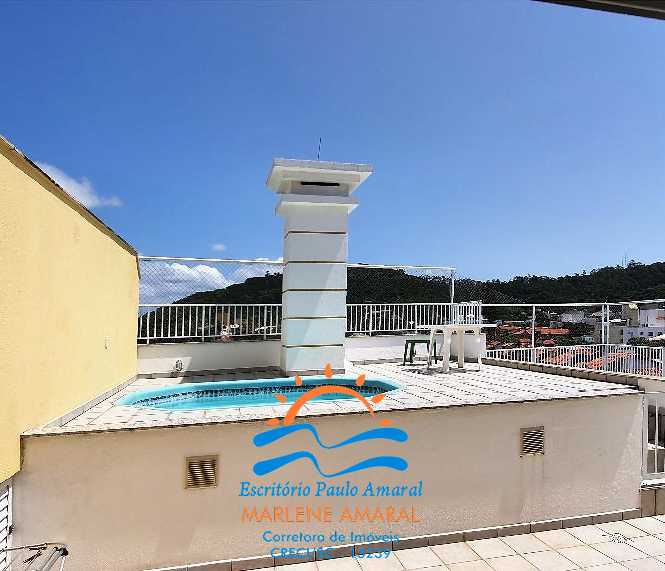 EXCELENTE COBERTURA 3 dormitórios a 40 m do mar - 1 suite casal e dois dormitórios solteiro - totalmente mobiliada - ambiente amplo - ar condicionado em todos os ambientes - cozinha completa - área de serviço c/ máquina de lavar - piscina particular no apto e piscina compartilhada no condomínio - duas vagas de garagem fixa. Vista Parcial do Mar